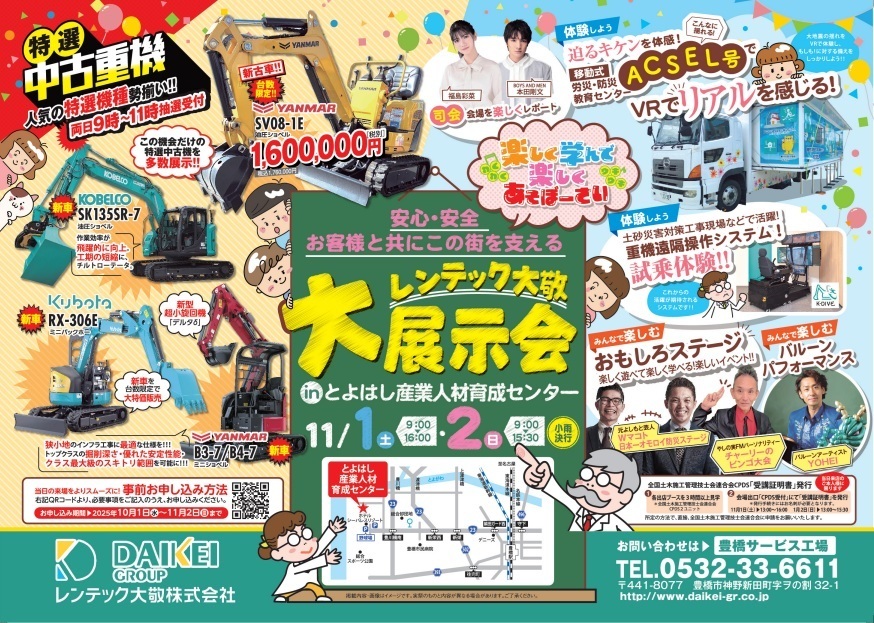 11月1日(土)2日(日) 豊橋で大規模展示会を開催!|レンテック大敬株式会社